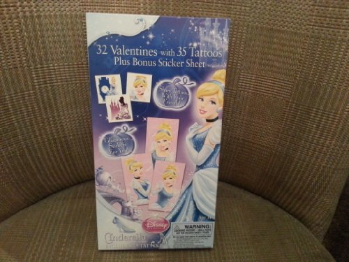 32 Disney Cinderella valentines with tattoos2013 Valentines Day Cards 32 Pack W/35 Tattoos Plus Bonus Sticker Sheet - Cinderella (Disney) By Paper Magic Group