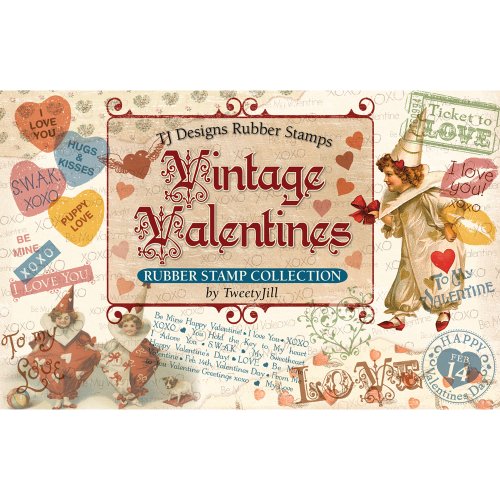 TJ Designs Rubber Stamp Set, Vintage Valentines