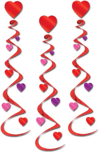 Heart Whirls. Size: 30". 3 per package.All sales final, no returns.Red Heart Whirls Valentine Decorations