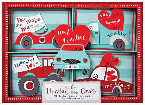 0 deluxe die cut Valentine's Day cards in the fun shapes of trucks, monster trucks and cars; plus a card for the teacher! Envelopes included. Button, ribbon and jewel embellishments.Driving Me Crazy 20 Children's Valentine Cards