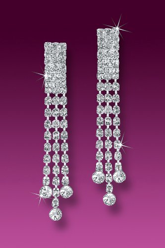- Clip on 3 strand quality exquisite long rhinestone earrings