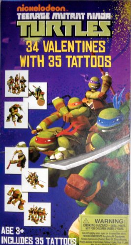 One box of 34 Teenage Mutant Ninja Turtles Valentines cards with 35 tattoos.Teenage Mutant Ninja Turtles 34 Valentines Cards with Tattoos