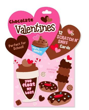 These 12 delightful scratch n' sniff cards feature six fun chocolate-themed designs. Cards measure 2.625" x 2.25". Perfect for school valentine exchanges.Chocolate Scratch n' Sniff Valentines