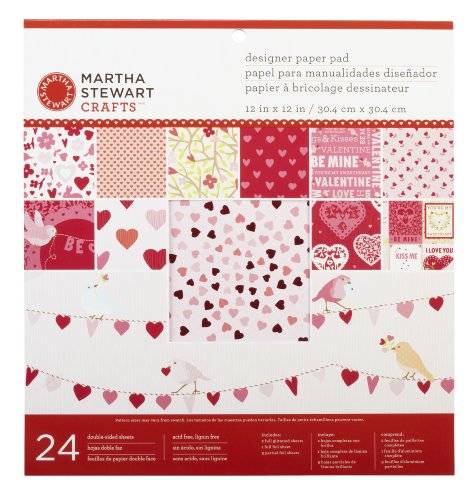 There are so many options for creating scrapbook pages, making cards, and more in this enchanted woodland paper pad from Martha Stewart Crafts. Patterns include hearts, flowers, birds, and more Valentine's Day-inspired patterns. 24 Double-sided sheets include 2 full glitter, 1 full foil and 9 partial foil sheets. Acid and lignin free. Sheet sizes 12 by 12 inches.