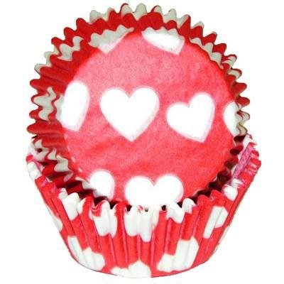 75 Valentine Love Hearts Baking Cups - Red - for Muffins / Cupcakes / Cake Pops - We Ship Within 1 Business Day w/ *FREE Standard Shipping!