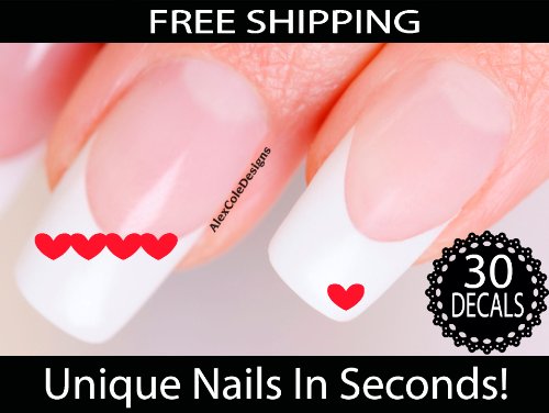 Heart Banner Nail Stickers - Valentines Nail Art (Red)
