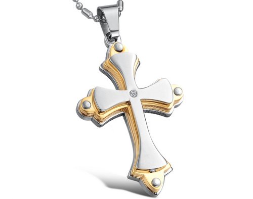 Unisex Fashion Top Grade Personalized Cross Pendant Necklace (Import Diamond Gold Cross)