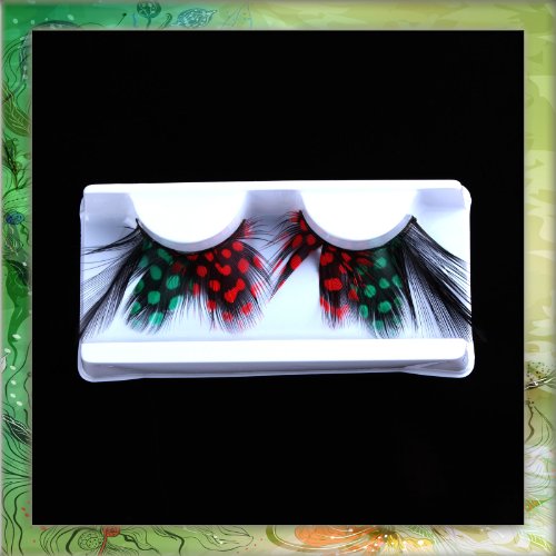 Valentine Day Date Costume Party Feather False Eyelashes Natural Green Red B0291